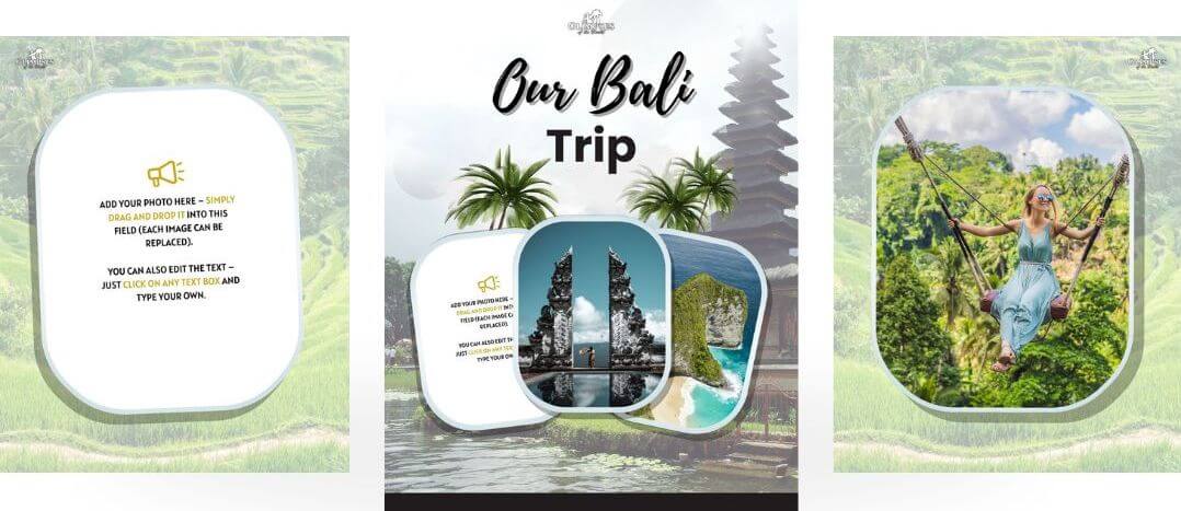 These Bali Instagram templates make it easy to share your journey in real time or after you return home. You can use them for beach days, temple visits, café moments, sunsets, and everyday travel details. Because the designs are consistent, your feed stays visually connected even if your photos are taken in different parts of the island. Each post template is flexible, allowing you to swap images, and adapt it to your own style. There’s no special software or design knowledge required beyond Canva. You can reuse the templates throughout your trip or save them for future travels. It’s a simple way to turn spontaneous Bali photos into well-presented posts.